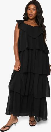 Plus Chiffon Maxikleid Mit Rüschen - Black - 42, Black