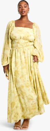 Plus Elastisches Maxikleid Mit Geradem Ausschnitt - Yellow - 42, Yellow
