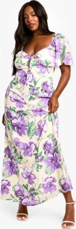 Plus Kurzärmliges Rüschen-Maxikleid Mit Floralem Detail - Purple - 48, Purple