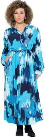 Damen große Größen Übergrößen Plus Size Maxikleid, Krepp, Oversized, Tunika-Ausschnitt, Langarm aquamarin 46+ 834065760-46+