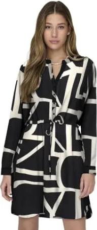 Damen Onllumina L/S Short Dress WVN Noos Kurzes Hemdkragenkleid Mit Elastischen Bündchen Für Den Sommer, Black, Small