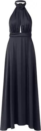 Damen Satin Abendkleid, Neckholder Kleid, rückenfreies Partykleid, Wickelrock, ärmelloses Festival Partykleid, Bodenlanges Hochzeitskleid, Weiches und bequemes Ballkleid