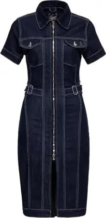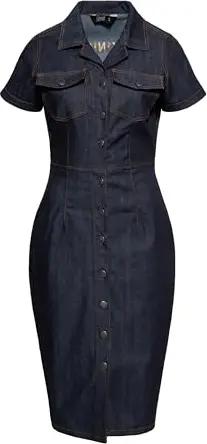 Damen Denim Kleid Bleistiftkleid Etuikleid Rockabella 50S Pinup Vintage Retro Elastan