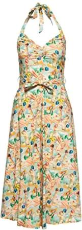 Damen Swingkleid · Sommerkleid · Bunt · A-Linien · 50s · Rockabilly · Rockabella · Pin-up · Vintage · Retro · Allover · Print · Artwork · Hawaii · Beaches