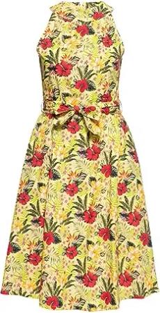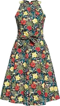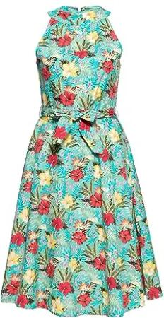 Damen Swing Kleid Tropischer All-Over-Print Sommerkleid Hawaii Sommerkleid Tropical Vintage Rockabilly Rockabella Hawaii
