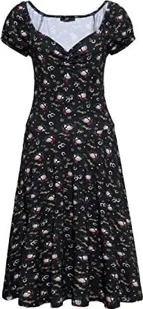 Damen Swing Kleid Classic Black Sommerkleid All-Over-Print 50S 40S 60S Black Dress Vintage Rockabilly Rockabella