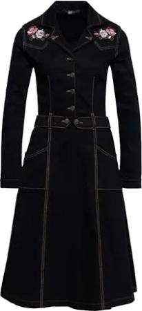 Damen Jeanskleid Denim Kleid Western Vintage Swingkleid 50S Rockabilly Stickerei Roses Roses