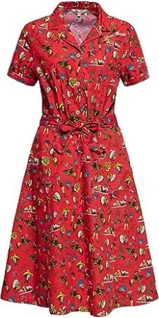Damen Swing Kleid Kurzarm Kleid Sommerkleid All-Over-Print Swing Dress Vintage Kleid Rockabella Cowgirl Howdy Kitty Howdy