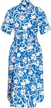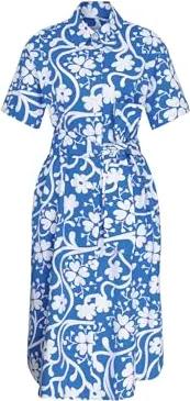 Damen Blusenkleid Midi - Fashionkleid mit Hemdblusenkargen - Regular Fit – Kurzarm – 100% Baumwolle