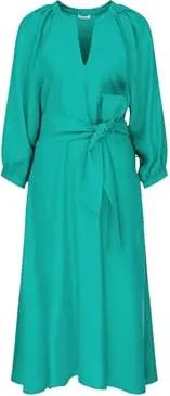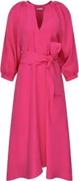 Damen Kleid - Blusenkleid - Midikleid - Regular Fit - Bügelleicht - Bluse mit Bindegürtel - Stehkragen - V-Ausschnitt - Siebenachtelarm - Midi
