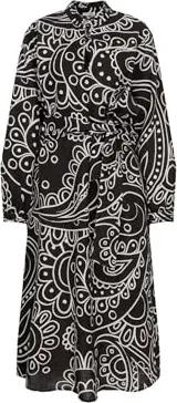 Damen Blusenkleid mit Bindegürtel - Kleid - Regular Fit - Maxi Kleid - Hemdblusenkragen - Langarm - 100% Viskose