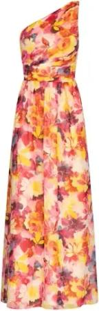 APART One-Shoulder Chiffonkleid mit Plissee- Drapierung vorne und Smoke- Einsatz hinten, pink-Multicolor, 34