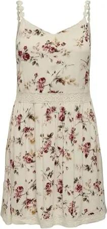Damen Kleid Karmen Anne Träger-Kleid mit Blumen-Muster 15177478 Creme brûlée: Rose Flower 38