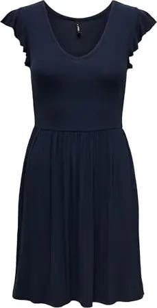 Damen Kleid ONLMAY LIFE S/L RUCHING DRESS CS JRS (DE/NL/SE/PL, Alphanumerisch, XS, Regular, Regular, Night Sky)