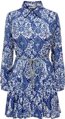 Damen Onllumina L/S Short Dress WVN Noos Kurzes Hemdkragenkleid Mit Elastischen Bündchen Für Den Sommer, Surf The Web, X-Large