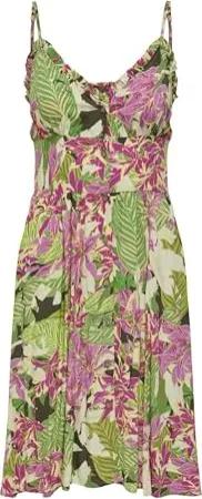 Damen Viskose Maxi Träger-Kleid Onlnova Life Strap mit Palmenmuster 15222217 Black 611 La Palma 34