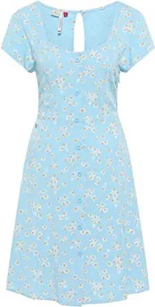 Damen gemustertes kurzes Sommerkleid Kurzarm Minikleid mit seitlichem Bindeband Knotta Print YOUMODO Midnight Gr. M