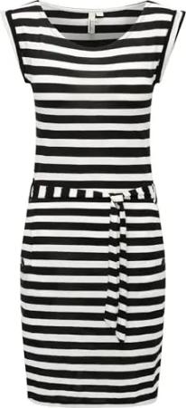 Damen Kurzarm Sommerkleid kurzes, gestreiftes Minikleid mit Taillenband und Taschen Tagg Stripes YOUMODO Black Gr. S