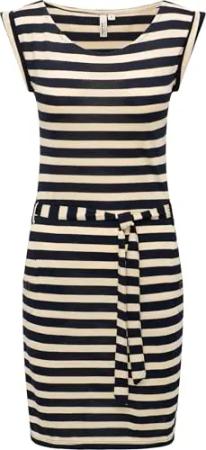 Damen Kurzarm Sommerkleid kurzes, gestreiftes Minikleid mit Taillenband und Taschen Tagg Stripes YOUMODO Navy Gr. L