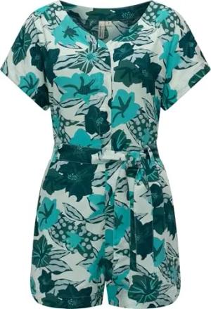 Damen kurzer gemusterter Sommer Jumpsuit Bodysuit mit Taillenband Salwin YOUMODO Aqua Gr. XL