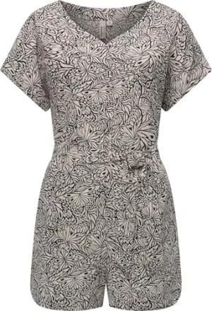 Damen kurzer gemusterter Sommer Jumpsuit Bodysuit mit Taillenband Salwin YOUMODO Ecru Gr. XXL