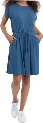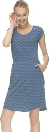 LILITHE Chevron Damen Frauen Kurzarmkleid,Kleid,Freizeitkleid,Sommerkleid,Shirtkleid,Kurzarm,Gummizug,Blau,S