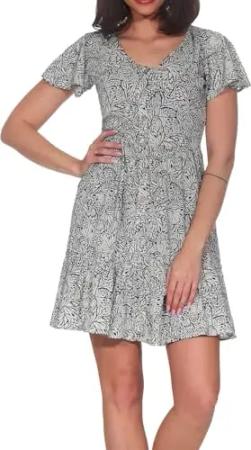 Damen bequemes Sommerkleid Kurzarm Midikleid Gemustert mit Stoffgürtel Taggien Print YOUMODO Ash Gr. L