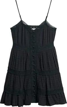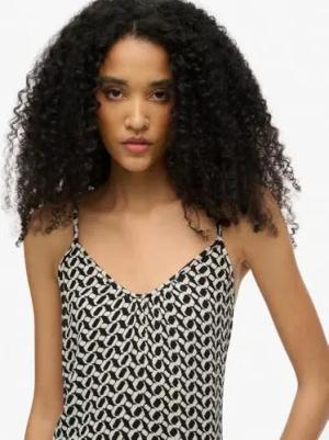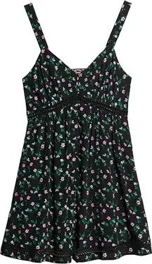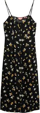 Damen Trägerkleid mit V-Ausschnitt und Spitzenbesatz Cosmos Black Floral Print 36
