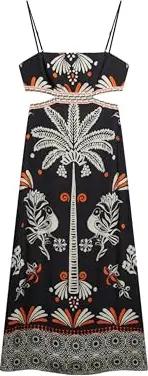 Damen Bedrucktes Midi-Trägerkleid Schwarz Funetotsuru 40