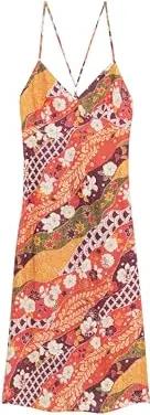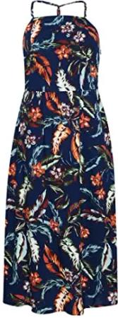 Womens Vintage CAMI Maxi Dress Lässiges Kleid, Indo Leaf Navy, S