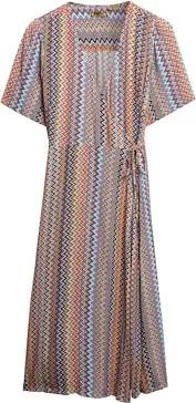 Damen Bedrucktes Wickel-Midikleid Vertikal Strandzickzack 36