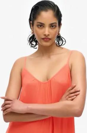 Damen Cami Maxikleid Leuchtend Korallrot 38