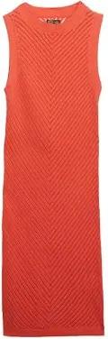 Damen Chevron Häkel-Minikleid Leuchtend Korallrot 38