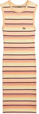 Womens Sleeveless Embroidered Dress, Pink Stripe, XS