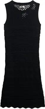 Damen Chevron Häkel-Minikleid Schwarz 38