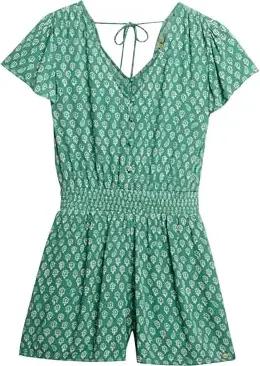 Damen Kurzärmeliger Playsuit mit Print Blumen Blockprint Grün 42
