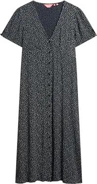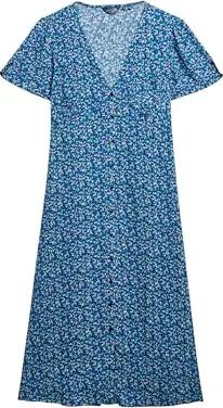 Damen Kurzärmeliges, bedrucktes Midikleid mit Knopfleiste Ditsy Geblümt Marineblau 36