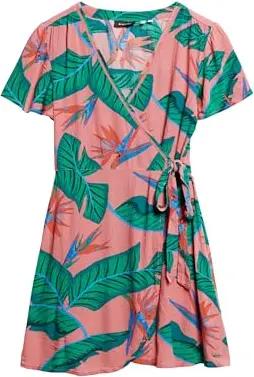 Damen Kurzes Mini-Wickelkleid mit Print Pink Paradies 36