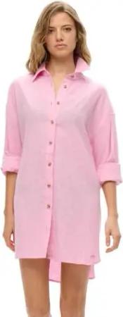 Damen Lang geschnittenes Ibiza-Strandhemd Flieder Helles Pink 34