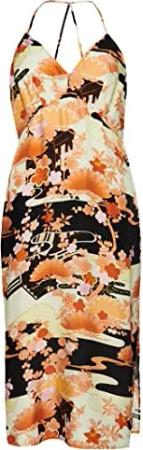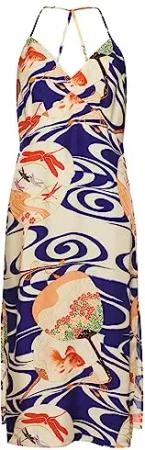 Damen Midi-Kleid mit Print und Nackenträger Goshodoki Gold 40