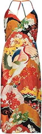 Damen Bedrucktes Midi-Trägerkleid Neonrot Michinaga 34