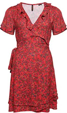 Damen Sommer-Wickelkleid Herbstrot Verspielt 40