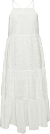 Damen Vintage Maxi-Trägerkleid mit Spitze Brillant Weiß 42