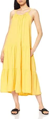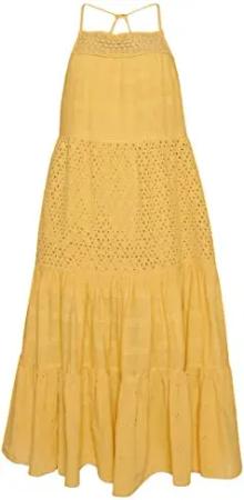 Damen Vintage Maxi-Trägerkleid mit Spitze Zitronengelb 42