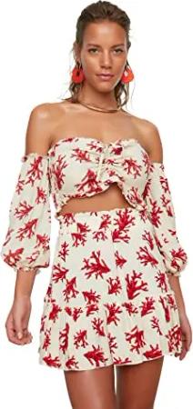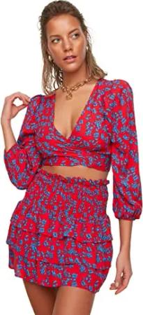 Damen Blumenmuster Gipeli Sub-top-Team Skirt Set, Rot, 40