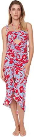 Damen Flower Stained Window Shutter Detailed Beach Dress, Pomegranate Blossom, 36 EU