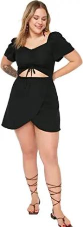 Damen Mini A-Linie Fitted Woven Plus Size Kleid, Schwarz, 40