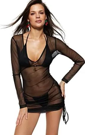 Damen Spitze Voile Strandkleid Dress, Weiß, 36 EU