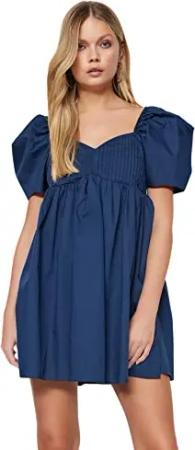 Damen Mini Skater Regular Fit Gewebtes Kleid, blau, 38