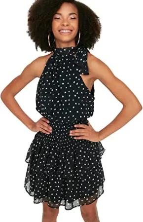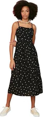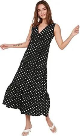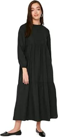 Damen Trendyol Kvinde Design Maxi A-line vævet kjole med rund hals Dress, Schwarz, 40 EU